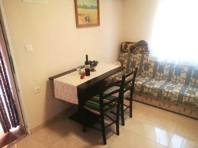 große Terrasse mit Tisch und Stühlen, Wohnessbereich, Couch zum Ausziehen für 2 weitere Personen, Küchenzeile mit Herd – Backofen