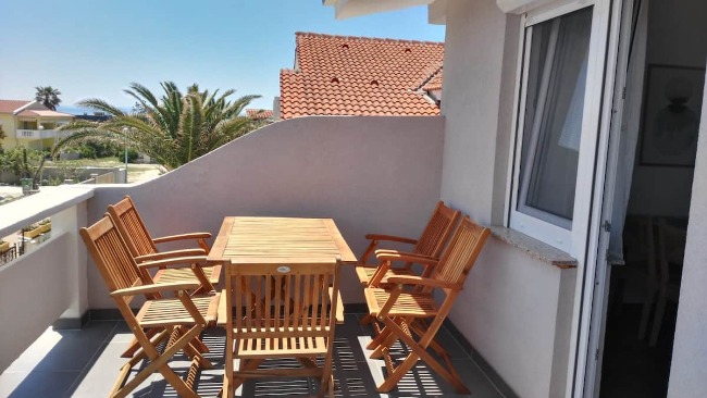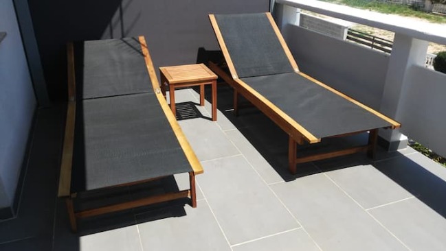Wohn- & Essbereich mit Couch & Ausgang auf die Terrasse, Bad/WC, Balkon & Tisch & 4 Stühlen, Safe für Wertsachen, Moskitonetze an allen Fenstern, Küchenzeile inkl. Ceran Kochfeld